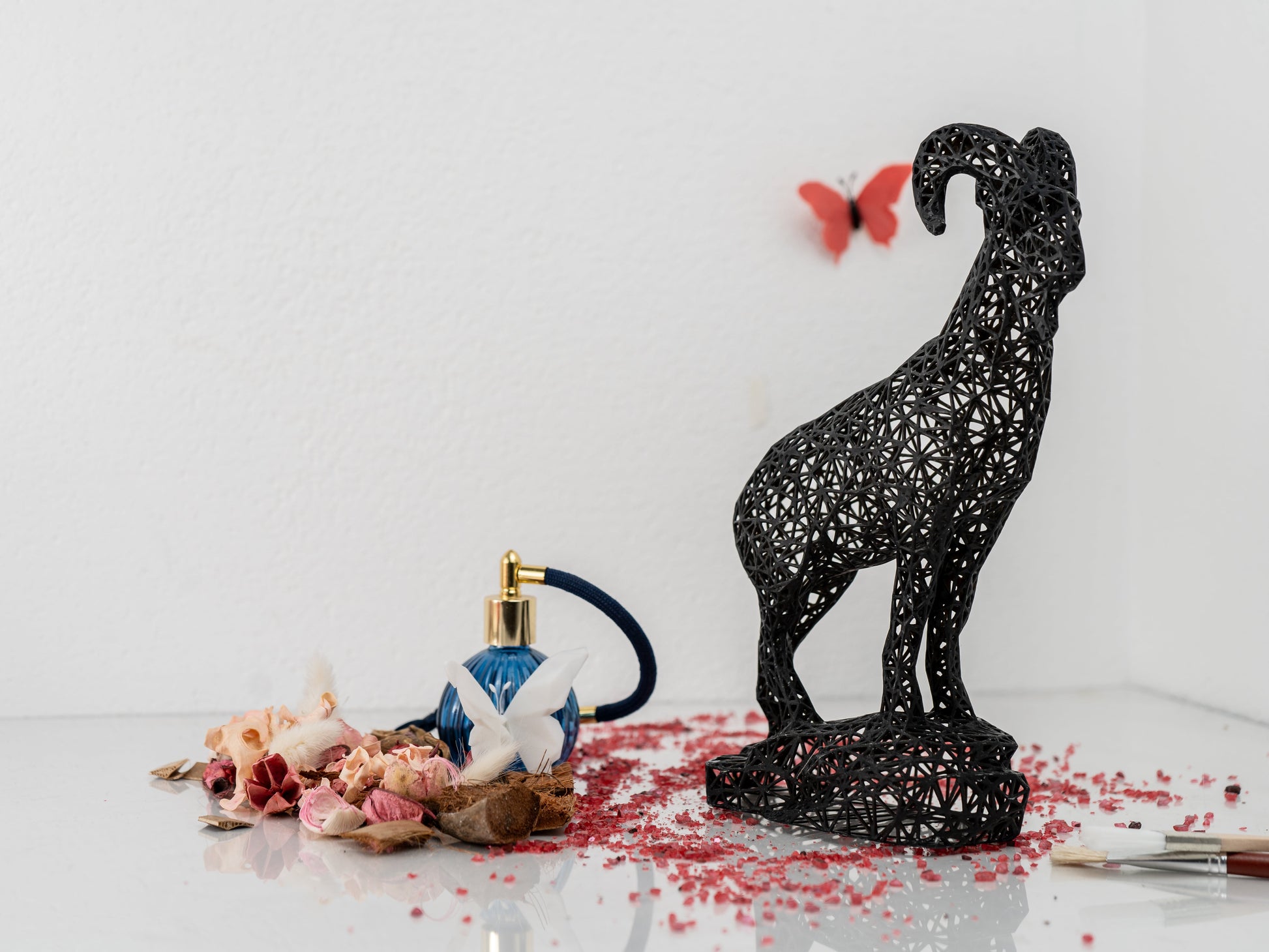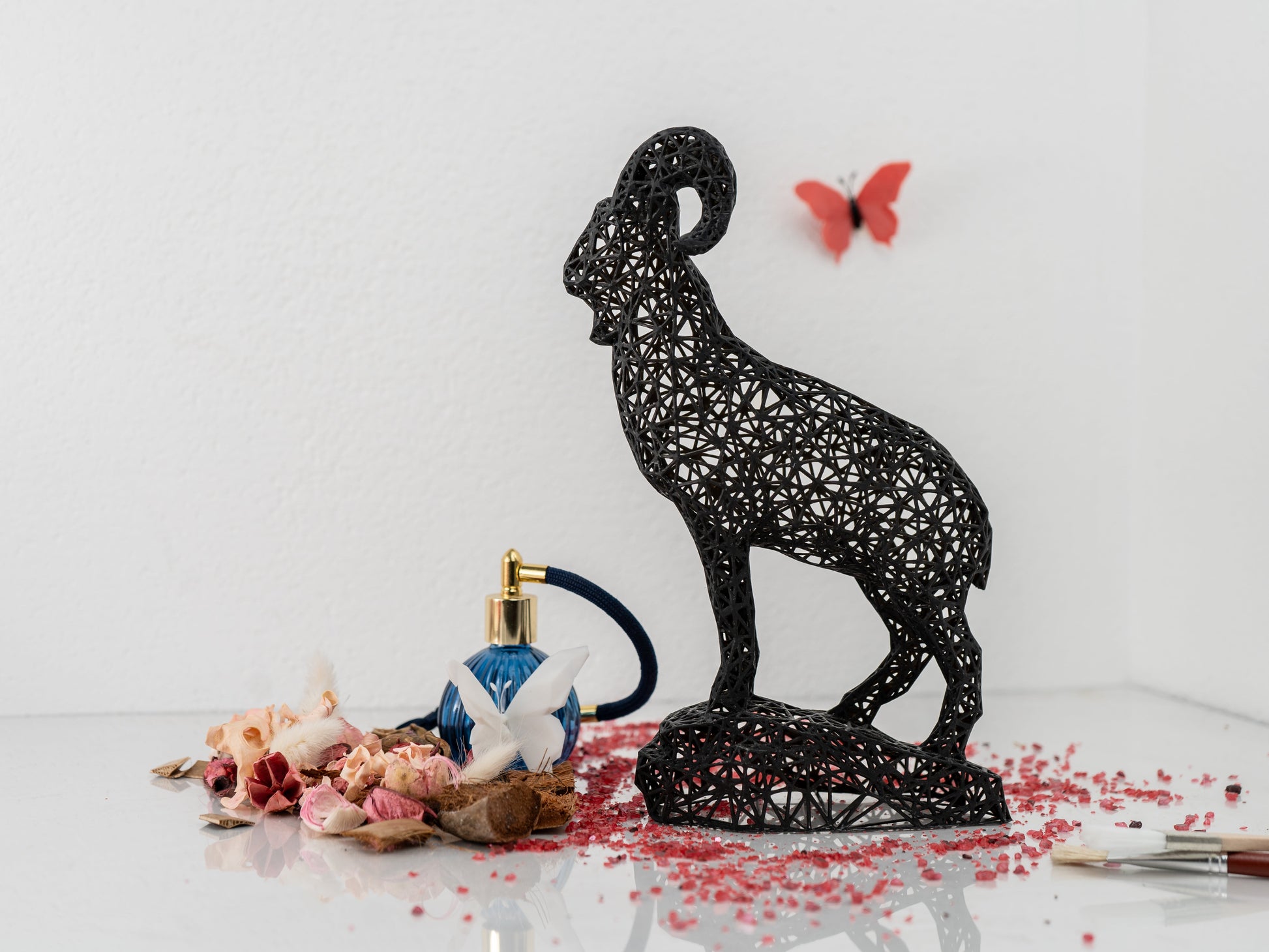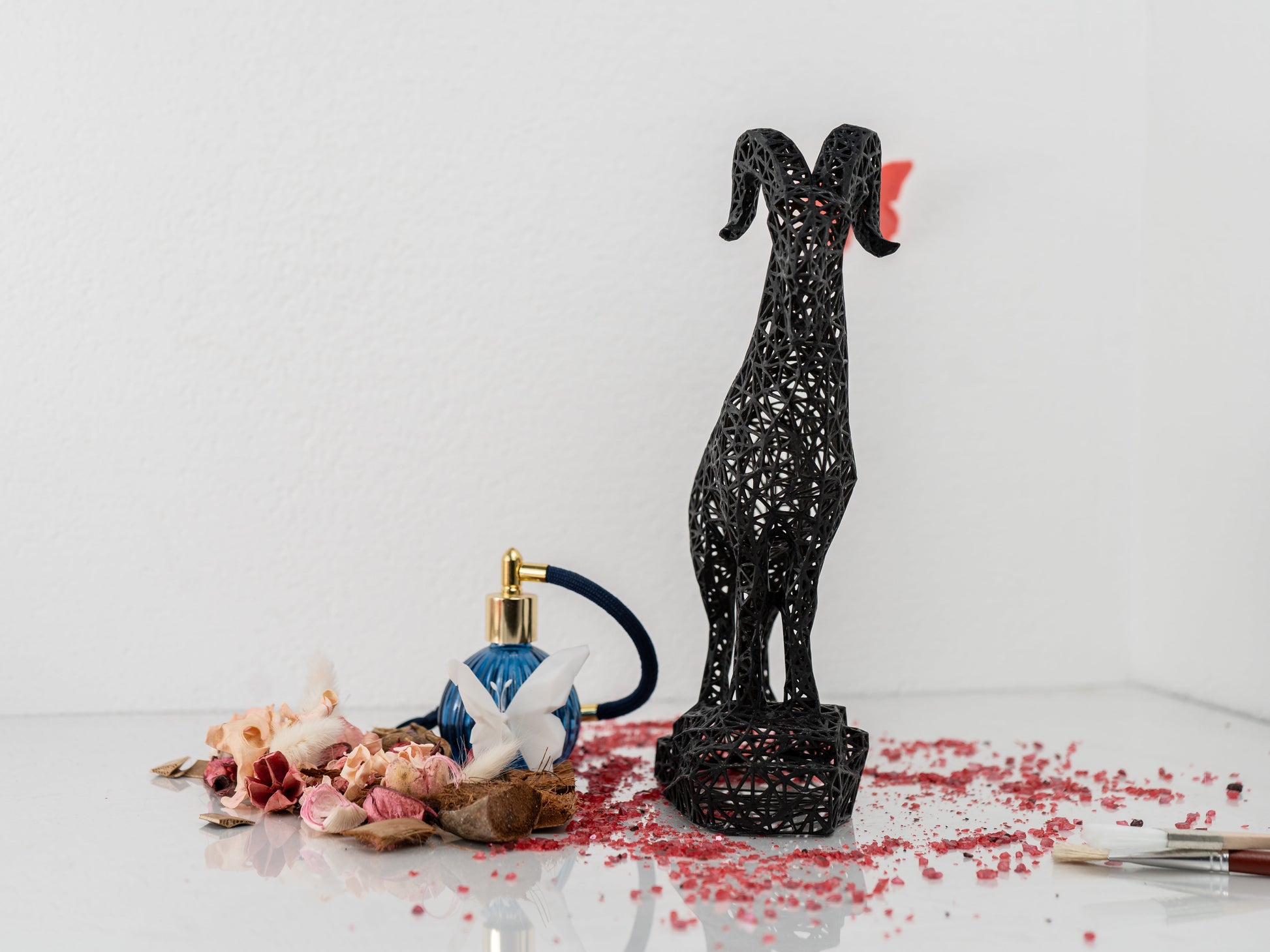 ✨ Made in Austria with cutting-edge precision, I’m crafted from durable acrylic resin using high-precision printers that create layers so fine they’re invisible to the human eye. The result? A sleek, modern piece that’s smooth, sturdy, and unapologetically chic. And don’t let my airy, geometric design fool you—I may look delicate, but I’m strong enough to survive a tumble off a desk (I’ve tested my horns!).