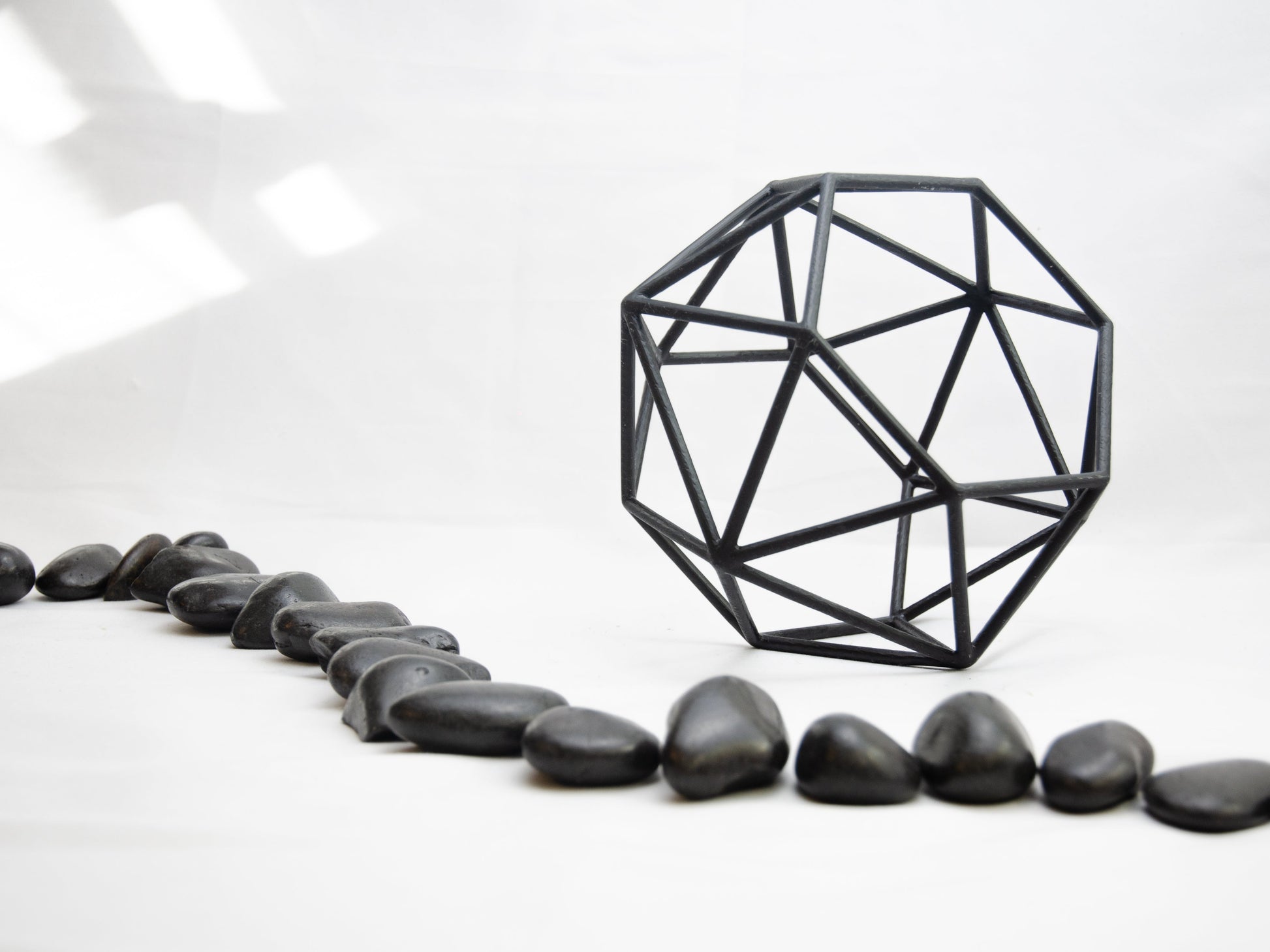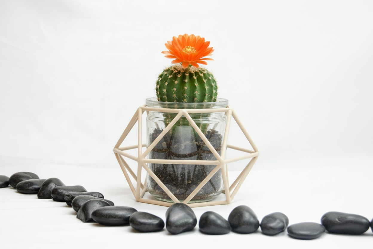This unique vase cage fits the popular IKEA BINTJE planter and all round pots with an inner diameter of 10 cm. Use it as a plant pot holder, bookshelf sculpture, or foyer accent—a perfect balance of minimalism and bold form. The upright variant in black adds extra vertical presence and contrast for darker or high-impact spaces.